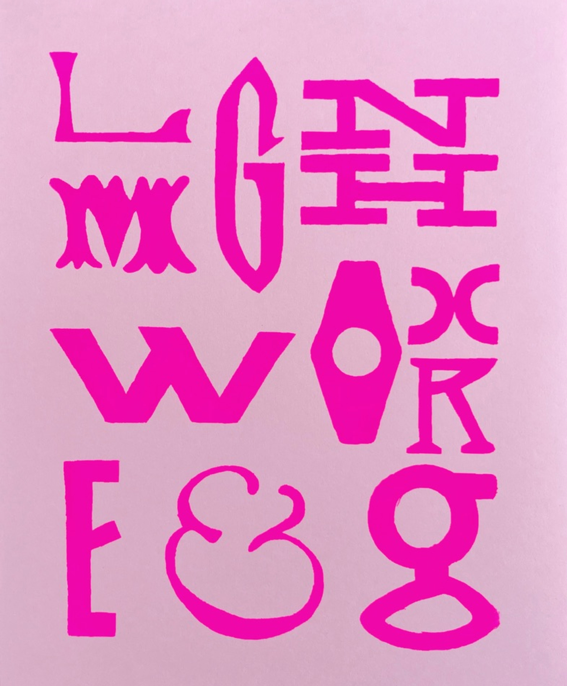 Description: Celebrating an array of letterforms selected from various points in graphic design history, this composition of typography makes reference to the New Haven Railroad logomark, a German Jugenstijl magazine, Scottish Nouveau and Bauhaus type, the Mother & Child logomark designed by Herb Lubalin, Tom Carnase, and Alan Peckolick.